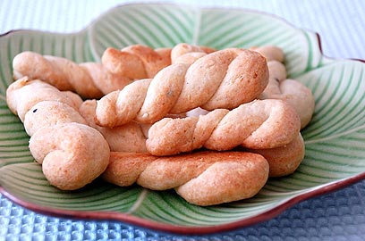 בבית הוריי, כשאמי מזמינה אורחים, תמיד מוצע נשנוש קטן לפתיחה: אגוזי פקאן קלויים מלוחים, או כעכי השומשום הטעימים של סבתא פלורט ז"ל. לפני חודשים אחדים, כשביקרתי בביתה של מירי הצבּעית, בולגריה במוצאה, טעמתי כעכים דומים מאוד, אלא שמירי הוסיפה להם קצח, שהפך אותם למעניינים יותר. כיוון שכך, כשהכנתי את הכעכים הוספתי כף קצח לשליש מכמות הבצק - והתוצאה לא אכזבה.