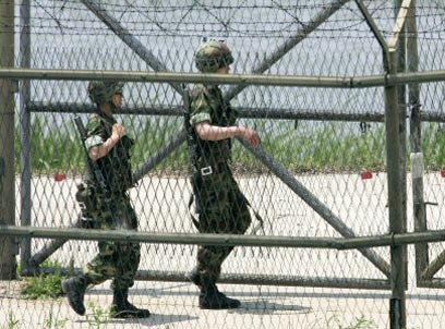 חיילים דרום קוריאנים מסיירים סמוך לגבול, היום (צילום: רויטרס)