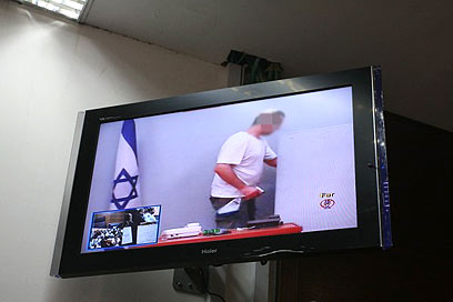 מסך הטלוויזיה בבית המשפט (צילום: עופר עמרם)