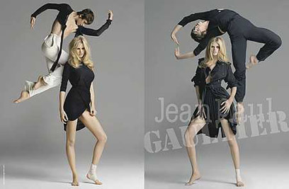 הדוגמנית לארה סטון מראה שלמות בפרסומת לז'אן פול גוטייה (באוויר: רקדן אלמוני). כמה אימג'ים כאלה אפשר לספוג ביום אחד?