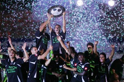 מכבי חיפה חוגגת עם הצלחת (צילום: אלי אלגרט)