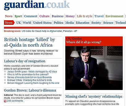 ראש הממשלה הבריטי, גורדון בראון, לא יכל כנראה לדמיין תרחיש גרוע מהתסבוכת הפוליטית שבה הוא שרוי היום (ד'), ערב הבחירות לרשויות המקומיות ולפרלמנט האירופי. זאת, בעקבות שורה של התפטרות שרים ובכירים ממפלגתו, הלייבור, וקריאה פומבית מצד העיתון "גרדיאן" לתנועת השמאל לערוך בחינת נפש עמוקה ולהיפטר מהעומד בראשה לפני הבחירות הכלליות.