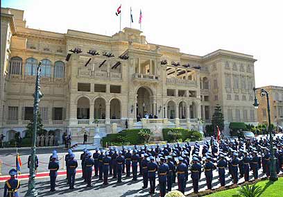 אובמה מתקבל בארמון הנשיאות בקהיר, הבוקר (צילום: AFP)