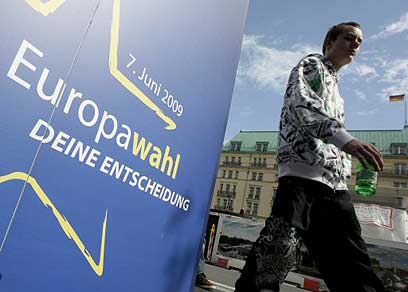 שלט לעידוד הצבעה בברלין. שיעור הצבעה נמוך ביותר? (צילום: רויטרס)