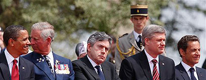 מימין לשמאל: סרקוזי, הרפר, בראון, הנסיך צ'רלס ואובמה (צילום: AP)