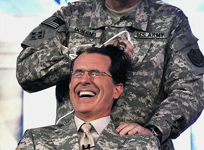 - סטיבן קולבר יצא בתחילת השבוע לצלם ארבע תוכניות של "הקולבר ריפורט" בבגדד, בהן משתתפים החיילים האמריקנים המשרתים שם. תוך יומיים בלבד החליט המגיש האמריקני להזדהות עם החיילים, עטה על עצמו מדים ואף גילח את ראשו לצורך הצילומים. "בטוח שנחמד פה בעיראק אם אתם חוזרים לכאן שוב ושוב", התבדח קולבר עם החיילים על חשבון הממשל האמריקני, בתוכנית שצולמה ביום ראשון. "בטח צברתם כל כך הרבה נקודות של 'הנוסע המתמיד' שיש לכם כרטיס חינם לאפגניסטן", הוא הוסיף, והמשיך להצחיק את החיילים עוד שעות ארוכות.