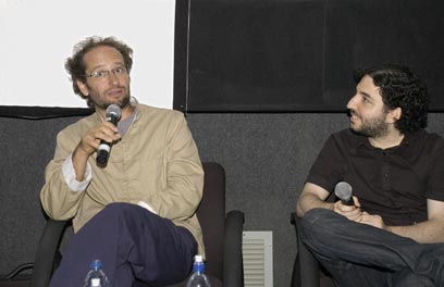 רייגאדאס (משמאל) בשיחה עם סטודנטים בשדרות (צילום: אורי מדמון)