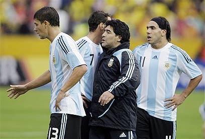 מראדונה וחניכיו באווירת משבר (צילום: AP)