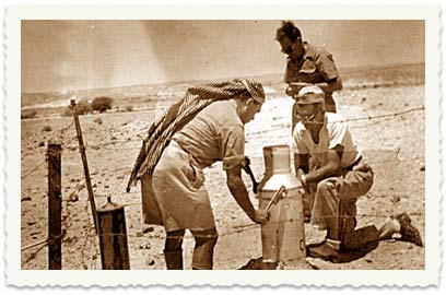 3. יולי 1951, הצבת מד-גשם בג'ראפי - ואדי פארן בדרך אילתה.
