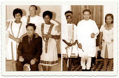 11. במסיבת פרידה באתיופיה לד"ר מ' הופמן, מומחה השירות המטאורולוגי הבינלאומי (wmo) היוצא. המסיבה נערכה בבית מלון ליד שוק אדיס אבבה, ב-30.10.1966. מימין: יעקב בלבוש מסורתי מקומי.