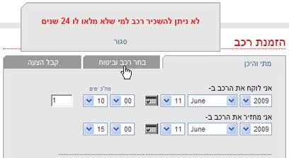 סברנו שמדובר בהתראה בלבד, אך כשסוגרים את ההודעה מסתבר שלא ניתן להתקדם בתהליך. מה פשר ההודעה הזו? לקח לנו זמן את שזיהנו שבחלק אחר של העמוד נדרש אישור ש"אני מעל גיל 24". בהסבר על שדה זה נאמר ש"נהג צעיר כרוך בתוספת תשלום וגילו עשוי להשתנות ממדינה למדינה". בשום מקום לא צוין שזהו שדה חובה לסמן בשביל להתקדם בתהליך. ואנחנו שואלים – למה? האם יש לאוויס סיבה שלא לספק את המידע לכל דורש, גם אם גילו 23? ולמה לחייב את המשתמש לסמן שדה שלא נראה בעמוד ללא גליליה בשביל לקבל מידע?