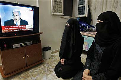 תושבות שכם צופות בנאום נתניהו (צילום: AFP)