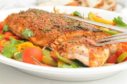 פילה סלמון אפוי בתנור עם פלפלים צבעוניים