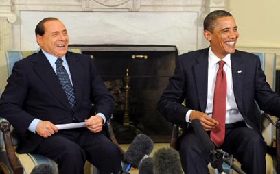 אובמה וברלוסקוני. פגישה בוושינגטון (צילום: AFP)