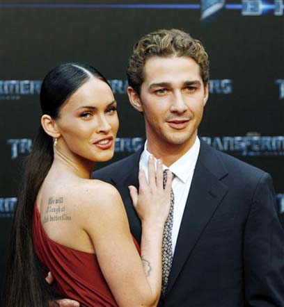 אחרי שנתייים של זוגיות מייגן פוקס (האישה הסקסית בעולם בשבילכם) נפנפה את בריאן אוסטין גרין (דיוויד מבברלי בשבילכם), ועכשיו יש לה זמן לקדם את "רובוטריקים 2" ולחשוף את שלל הקעקועים שלה. ורגליים