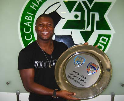 איגביני יעקובו עם צלחת האליפות (צילום: באדיבות מכבי חיפה)