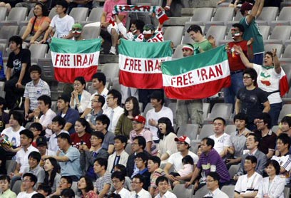 מוקדם יותר היום, המשחק המכריע בבית 2 במוקדמות מונדיאל 2010 בין דרום קוריאה לאיראן הפך לזירת מפגן מחאה מצד השחקנים והאוהדים האיראנים שנכחו ביציעים בסיאול נגד המשטר בארצם.