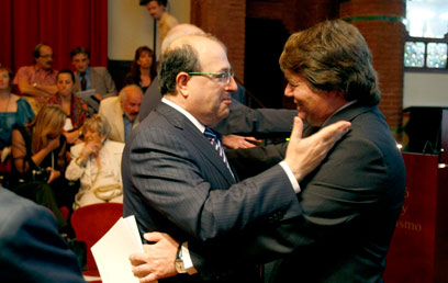 צימרמן ועורך "La Vanguardia", בעת הענקת הפרס (צילום: יעל קחת)