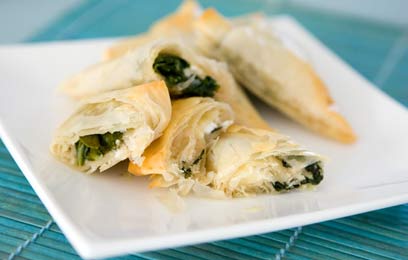 - מפרידים את עלי הפילו. מניחים עלה על משטח העבודה ומורחים עליו מעט חמאה מומסת. מניחים עלה נוסף על העלה וחוזרים על הפעולה עם כל העלים.