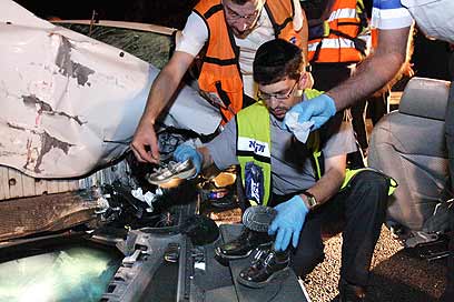 עדות לזוועה: נעלי הילדים במכונית המרוסקת (צילום: עידו ארז)
