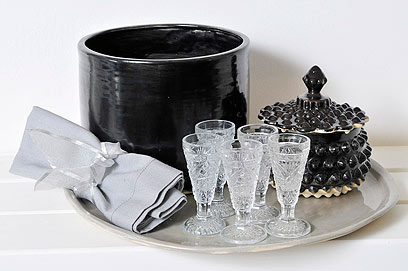 מה שהקסים אותי כל כך הוא הסגנון הייחודי של גולדברג, והצירופים שהיא עושה בין כלי הקרמיקה בעבודת יד עם כלים ישנים קלאסיים, אותם היא אוספת באהבה בשווקי העתיקות בארץ ובעולם. לצד קעריות קטנות בטורקיז הניחה גולדברג כף קמח עתיקה עם ידית עץ, שהקצה שלה צבוע בטורקיז אותה היא מצאה בשוק פריזאי. ליד צלחות וספלים מעוטרים בפס זהב הציבה גולדברג את המציאות שלה מנסיעה לניו אינגלנד, קעריות מקריסטל וכוסיות ליקר קטנות מעוטרים בזהב.