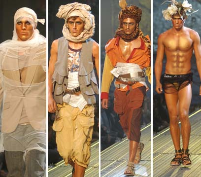 נפוליאון וחייליו במצרים. ה"חיילים" ניסו להגן על ראשם וגופם השזוף, שכוסה בגרגרי זהב, בעזרת מדים וחלקי לבוש אחרים. כך הפכו חולצות לכובעים ולתחבושות, רשת דקיקה וקרועה כיסתה חליפות קלאסיות, ובתוך הערבוביה היצירתית הזו אפשר היה לגלות מקטורנים גדולים, מכנסי בגי ושורטס, חולצות פסים ואבזרים מוצלחים רבים, וגם נפוליאון אחד, חיוור ומותש.