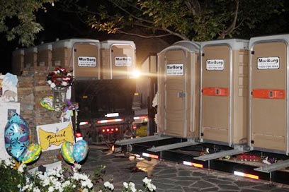 ההכנות לקראת תצוגת ארונו של ג'קסון בחוות "נברלנד" בסוף השבוע, בשיאן. אתמול (ג') הודיעה המשפחה כי ארונו של ג'קסון יוצג בחוותו המפורסמת, כשהקהל יוכל לחלוף על פני הארון ולהיפרד.