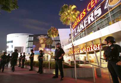 מרכז "סטייפלס". מסכי ענק עבור המעריצים שבחוץ (צילום: רויטרס)