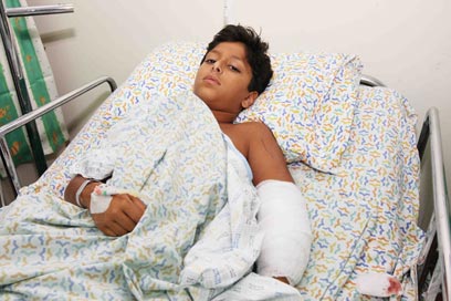 אילון פתחיה, בן ה-10 ממושב גאולים שבשרון, סיים רק השבוע את הלימודים ובשנה הבאה אמור לעלות לכיתה ה'. החופש הגדול שלו נפתח רע מאוד לאחר שננשך על-ידי כלבים בדרכו לבית הכנסת. הוא נותח בידו וברגלו בבית החולים מאיר בכפר סבא, ומצבו מוגדר בינוני. "עדיין כואב לי כל הגוף, מה שעברתי היה מפחיד", סיפר ל-ynet כשהועבר למחלקה הכירורגית.