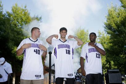 Evans, Casspi, and Brockman being presented (Photo: Rocky Widner, Sacramento Kings)