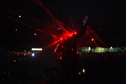 בהמשך ההופעה, חברים אמיצים העלו את חברותיהן על הכתפיים, מה שגרר תגובות נמהרות של המאבטחים, שסימנו להם להוריד אותן, בלי לספק הסבר. זה מתקבל אחרי מספר דקות: שתי זרועות ענק החלו לנוע מעל הראשים של העומדים ב"אזור האדום", מה שהעניק לחברי הלהקה אפשרות לטייל ברחבי הבמה החיצונית בקלות.