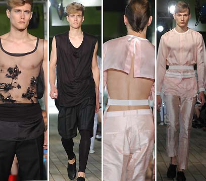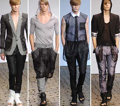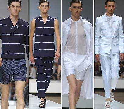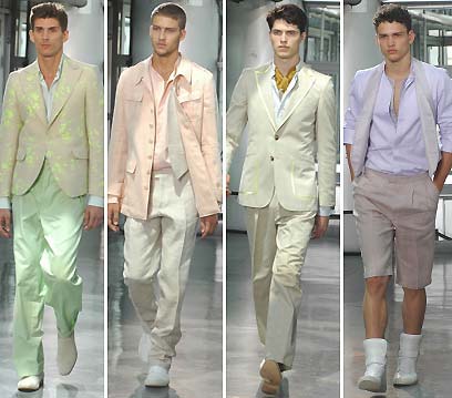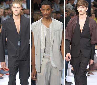 תרמיל גב יוקרתי ושמיכה מגולגלת המחוברת אליו, כפי שהציגו בית לואי ויטון וג'ון גליאנו, יחליפו בקיץ הבא את המזוודה הקטנה עם הגלגלים, סימלו של הגבר המצליח הדוהר מפגישה לפגישה במחלקה ראשונה. הגבר שנראה על מסלולי התצוגות בשבוע האופנה לגברים בפריז לא רואה יותר את העבודה כמרכז חייו (או שמא אין לו עבודה?). הוא רוצה לטייל, להתאוורר, הוא חולם על מסעות במדבריות אפריקה. כך, המלתחה לקיץ הבא, כפי שהציגו מעצבי פריז, היא אוורירית, קלילה ולא מחייבת. הבדים שקופים, הצבעים בהירים, המכנסיים רחבים, עם הרבה מאוד אופציות למכנסיים קצרים, צווארוני החולצות קטנים עוד ועוד או כלל לא קיימים והמקטורן מצידו מוותר על השרוולים.