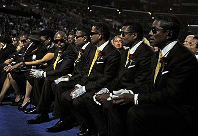 כל אחיו של ג'קסון ישבו יחדיו באולם, לבושים בתלבושת זהה: חליפות שחורות, עניבות צהובות ופרח אדום בדש, כשידם הימנית עטויה בכפפה לבנה מנצנצת. ילדיו של ג'קסון, פרינס מייקל, פריס קת'רין ופרינס מייקל "בלנקט", ישבו סביב סבתם קת'רין, כשהבכור נראה מתוח ולעס מסטיק בריכוז.