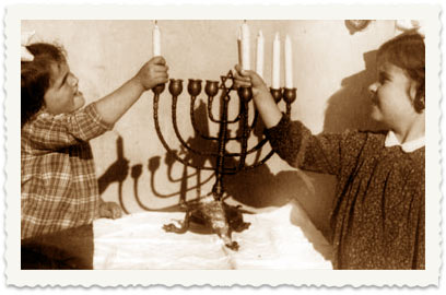 19. חג החנוכה, 1942. בנותיהן של הוגו (צבי) ורות הרץ, שולמית ונעמי, מדליקות נרות חג. כיום חיות שולמית ויינשטין בפתח תקווה ונעמי לרמן - בירושלים. שולמית נשואה והיא אמא לשני בנים ובת וסבתא לנכדים ונכדות, בהן שתי חיילות בצה"ל. נעמי נשואה ולה בן סטודנט. כל צאצאי משפחת הרץ גרים בארץ. כך התגשמו שאיפותיו של הוגו (צבי) הרץ לעלות לארץ ולהשתתף בתקומתה.