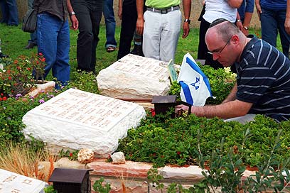 בני רגב מעל על קבר אחיו, הערב (צילום: מורן שביט)