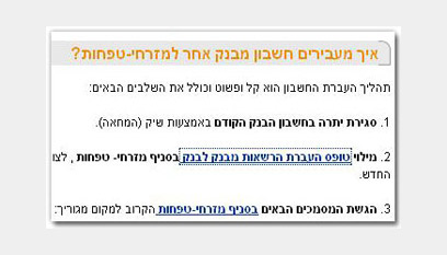 בתבנית שכותרתה "פותחים חשבון", משפחת בליבנק הצליחה לאתר שורה בשם "העברת חשבון למזרחי-טפחות". למרות שהשורה הזאת לא הייתה מודגשת כשאר השורות בתבנית, היה למשפחת בליבנק די ברור שהמידע שמסתתר מאחורי הקישורית כוא בדיוק מה שהם צריכים כדי להגיע להחלטה.