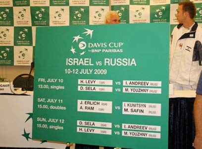 הגרלת סדר המשחקים מול רוסיה קבעה כי המחבט מספר 2 של ישראל ישחק ראשון מול המדורג 24 בעולם. אחריהם: סלע - יוז'ני. סאפין ישחק רק בזוגות. רם: "אני מאמין שנביא את הנקודות"