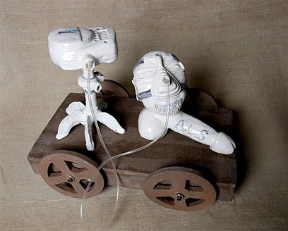 אחד הפסלים המושכים את העין במיוחד, הוא פסל המציג ראש המחובר לאבר מין זכרי עליו כתוב A.L.S. "הגוף נעשה לא פעיל, שני האיברים הפעילים זה איבר המין זכרי נקבי והראש" היא מסבירה בעצב. "אז צריך להוריד את כל הגוף ולהשאיר רק את הראש ואת הזין, זהו", מוסיף שלמוביץ'. "כמה שהוא כלוא בתוך הגוף שלו, הוא הבן אדם עם החשיבה הכי חיובית שפגשתי, והוא הרבה יותר חי מהרבה אנשים, הוא יוזם והוא מזיז את כל העולם סביבו"