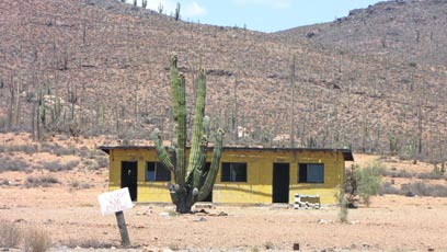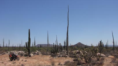 מאוחר יותר, כשמונים ק"מ אחרי שיצאתי את העיירה הנחמדה הזו, מצאתי כמה וכמה אתרי קמפינג על החול מול הגלים, אך כדי להגיע אליהם הייתי אמור לרכוב בלילה - משהו שאיני עושה. עצרתי באחד החופים לארוחת בוקר, וכבר תכננתי לשרוף כאן יום-יומיים, אבל הבעלים מכר את המקום לכמה קבוצות לשבועיים הקרובים. כשעברתי בהמשך באזורים יבשים וצרובים. שמתי לב כי גם במקומות הכי בלתי צפויים, המקסיקנים הקשוחים נאחזים במעט שיש לקרקע לתת. פרות מצומקות, עצים מתייבשים ודרכי עפר מעלות אבק ללא טיפת צל או ירק.
