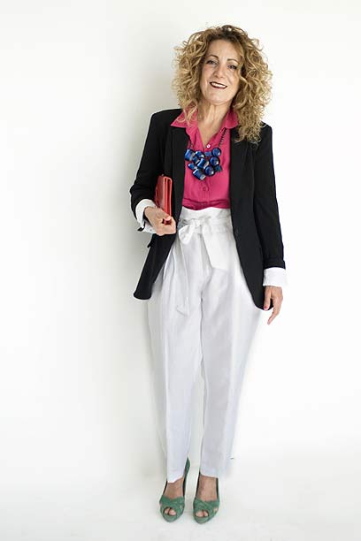 הסטייליסטית קורין גולד־מגדים: "חסיה מתלבשת בסגנון שהוא יותר פרקטי מאשר אופנתי. בחרתי להשתמש בבדים נוקשים ומעוצבים כדי להחמיא לגוף ולקבל תוצאה סופית שמשדרת 'DRESS 4 SUCSSES'".