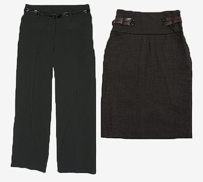 - מכנסיים וחצאיות עם פסים לאורך יוצרים אשליה של אורך מוסף.