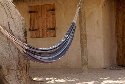 המתנו לאורי במרכז החאן, ליד עץ שיטה ענקי. הדקות שעברו עד שהוא הגיע השאירו אותנו להתבשל קצת בתוך עצמנו, ולקלוט שאין כאן שום טעות. אם אתה רגוע ועירני, אתה קולט די מהר את הקטע של המקום: שקט, נוף גבעות עגול ומתון, אוהלים צבעוניים, מבנים חומים מחומרים טבעיים. במקום כזה אתה מבין שאיבדנו קצת את הקשר לגיאוגרפיה הטבעית שלנו, ושמבנים בניחוח מדברי־מקומי יכולים להיות מדהימים ביופיים ופשטותם. זאת בנייה שאלפי שנים של ניסיון ליטשו אותה לרמה שבה לא צריך מזגן גם ביום שבו התל אביבים מתפגרים מחום.