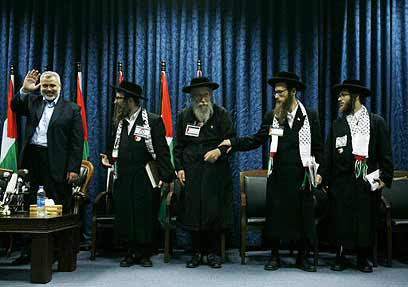 בזמן שבירושלים מפגינים חרדים, בין היתר מנטורי קרתא, נגד מעצר האם החשודה שהרעיבה את בנה, הגיעה היום (ה') משלחת של הזרם המתנגד למדינת ישראל לרצועת עזה - שם נפגשו עם ראש ממשלת חמאס, איסמעיל הנייה.