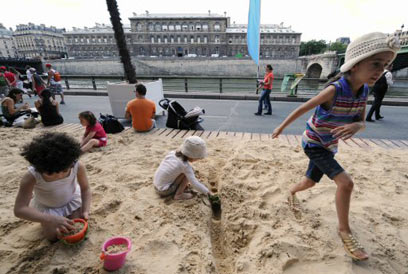 גדות הסן הפכו בפעם השמינית לחוף ים מלאכותי - כדי לאפשר לפריזאים שנפגעו מהמשבר הכלכלי להרגיש קצת בחופש למרות הכל