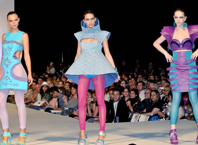 התקיימה השנה דווקא בנמל תל אביב, כחלק מחגיגות מאה השנים לעיר. בתצוגה השתתפו 18 בוגרים צעירים שהתמקדו בעיקר במשחקי נפחים ובשילובי חומרים לא שגרתיים בעיצוב. המראות היו גרנדיוזיים ויצירתיים ופחות מיועדים ללבישה. אנחנו בחרנו את חמשת הבוגרים המוצלחים ביותר בעינינו, אתם מוזמנים לצפות בווידאו ולהתרשם בעצמכם.