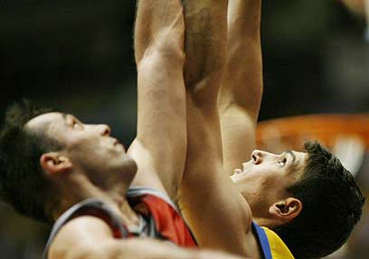 איידסון נגד מכבי בהיכל. בצלמו ובדמותו (צילום: רויטרס)