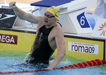 שרה סיוסטרום היתה לשחיינית הראשונה ברומא שמנצפת שני שיאי עולם תוך פחות מיממה. השבדית קבעה היום את התוצאה הטובה בעולם אי פעם ב-100 מ' פרפר, 56.06 שנ', יממה לאחר שעשתה זאת במקצה חצי הגמר.