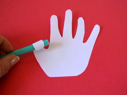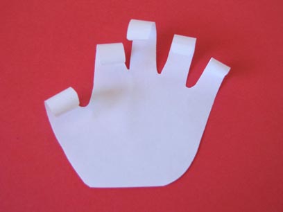 2. גוזרים את כף היד וגוזרים קו ישר באזור שורש כף היד, כמו בצילום. מגלגלים את האצבעות מסביב לטוש.