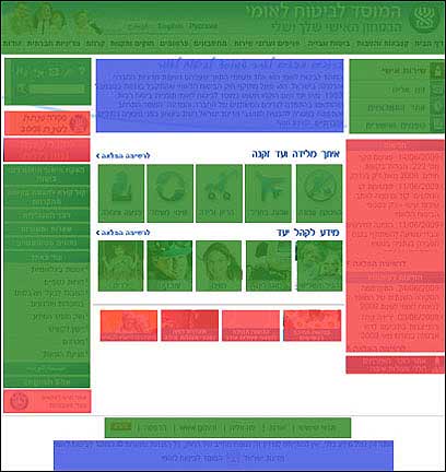 מעל ל-50 אחוזים משטח העמוד הראשי מוקדש לאמצעי ניווט באתר (מסומנים בירוק). הם נמצאים בחמישה איזורים שונים, שכל אחד מהם מאורגן אחרת. אז איך מוצאים את מה שרוצים? הארגון הנוכחי גורם לצופים למאמץ רב בניסיון לפענח את הדף ולאתר בו את המידע שהם מבקשים.