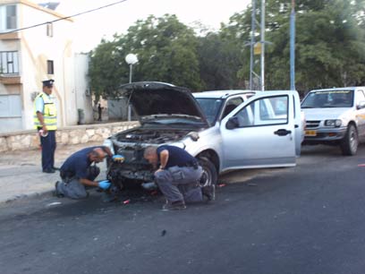 חבלנים בודקים את מכוניתו של וייסבורג הבוקר (צילום: טובה דדון)